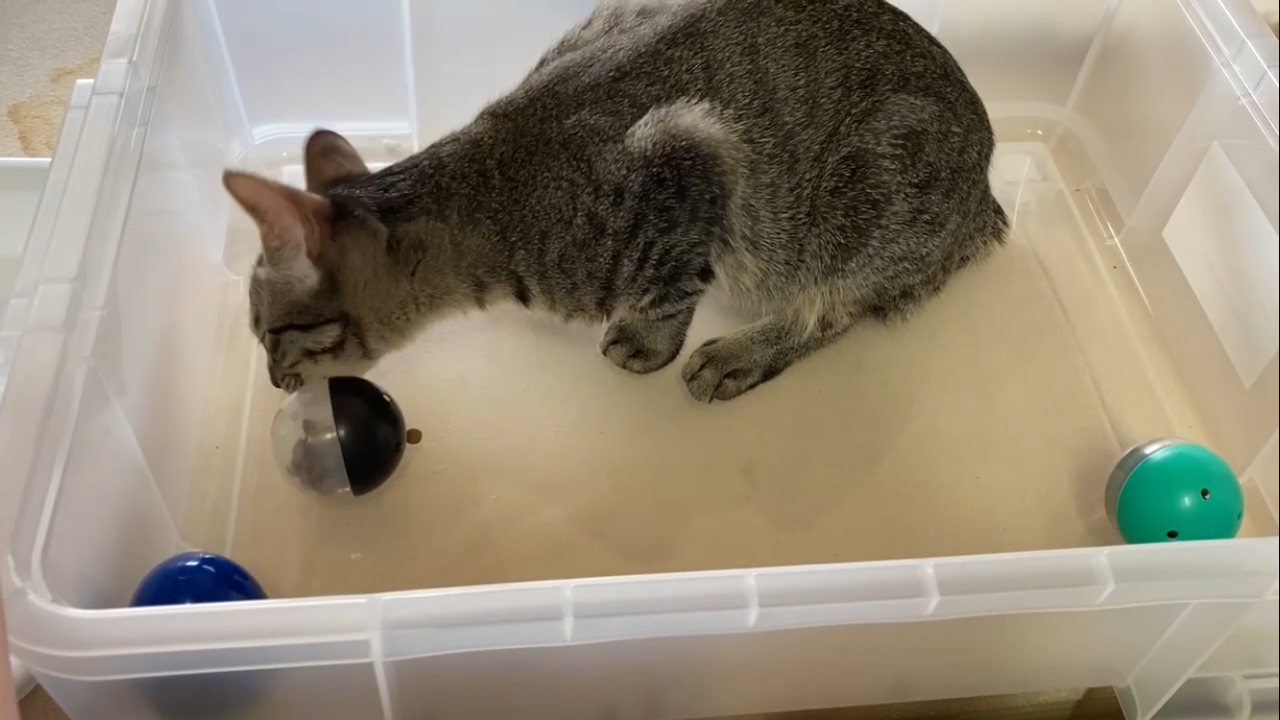 そのうち2回は水分補給目的のごはん、2回はパズルフィーダー、