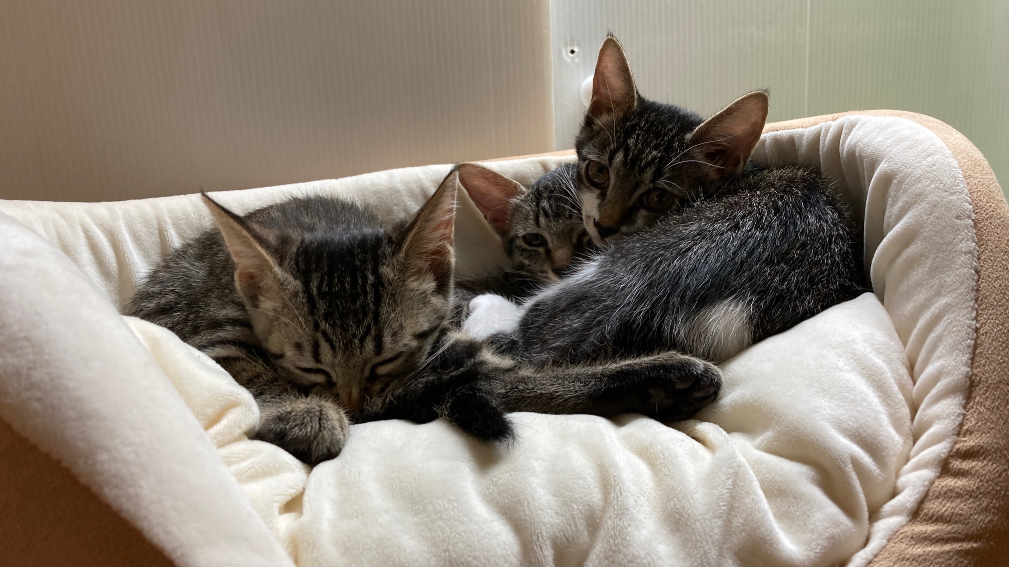 こんな風に、3匹でくっついて寝てもベッドが余ってました❣️
