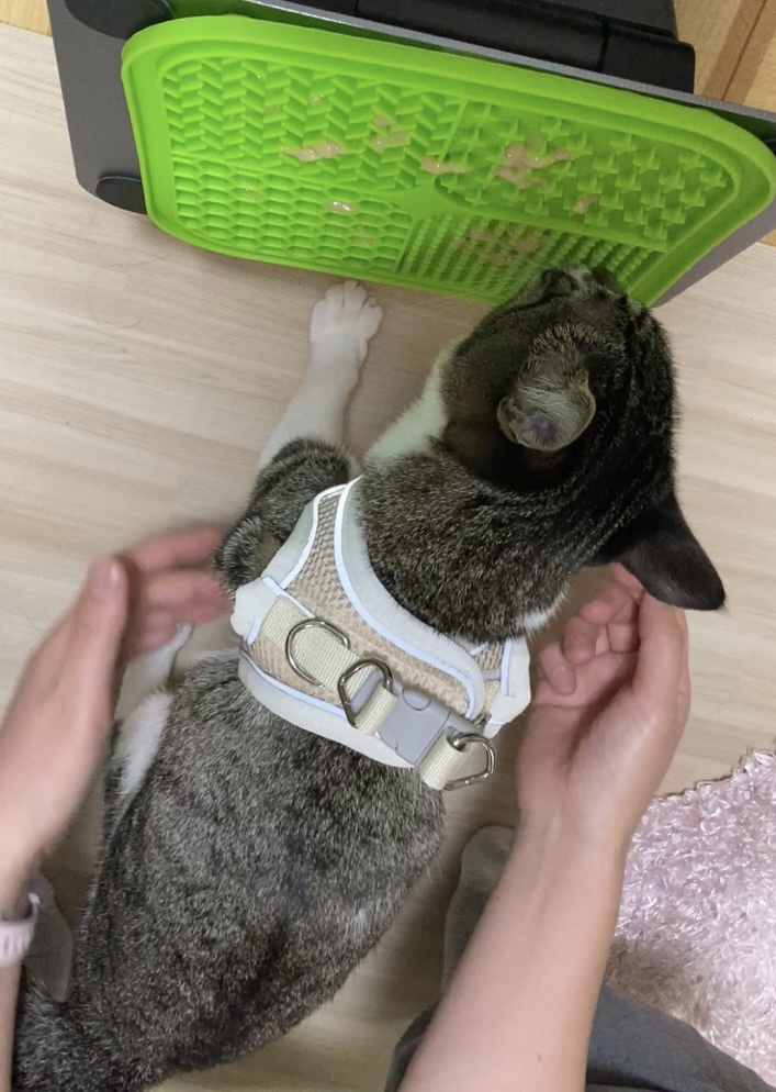 ハーネス練習もおやつで楽しく♪ ケアは“少しずつ・楽しく”がコツ❣️