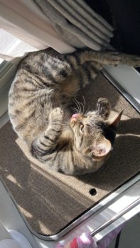 窓辺の日向で気持ちよさそうに身づくろいしたり、転がってくつろいだり…。
