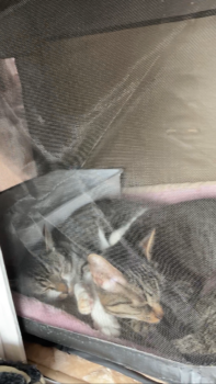 それでも、みーにゃんズはケージの中でぴったり寄り添いながらスヤスヤ…。
