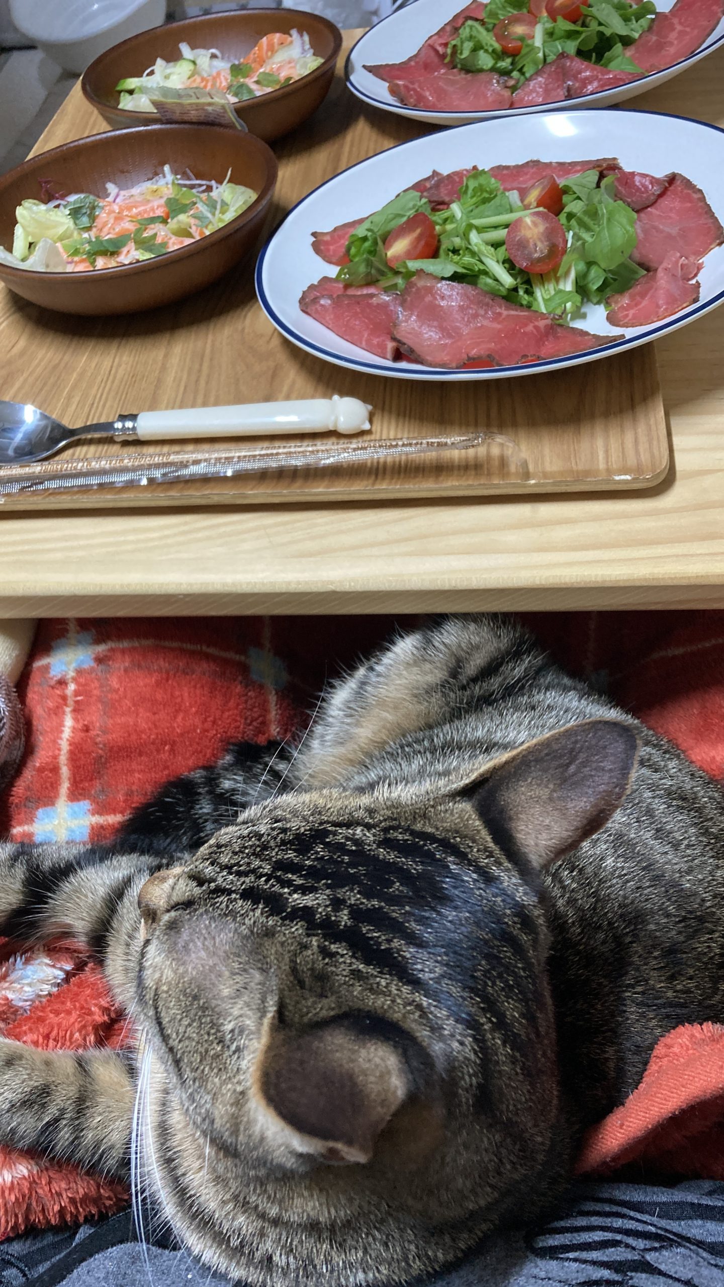 買い物を済ませて、ローストビーフやクロワッサンを並べて、